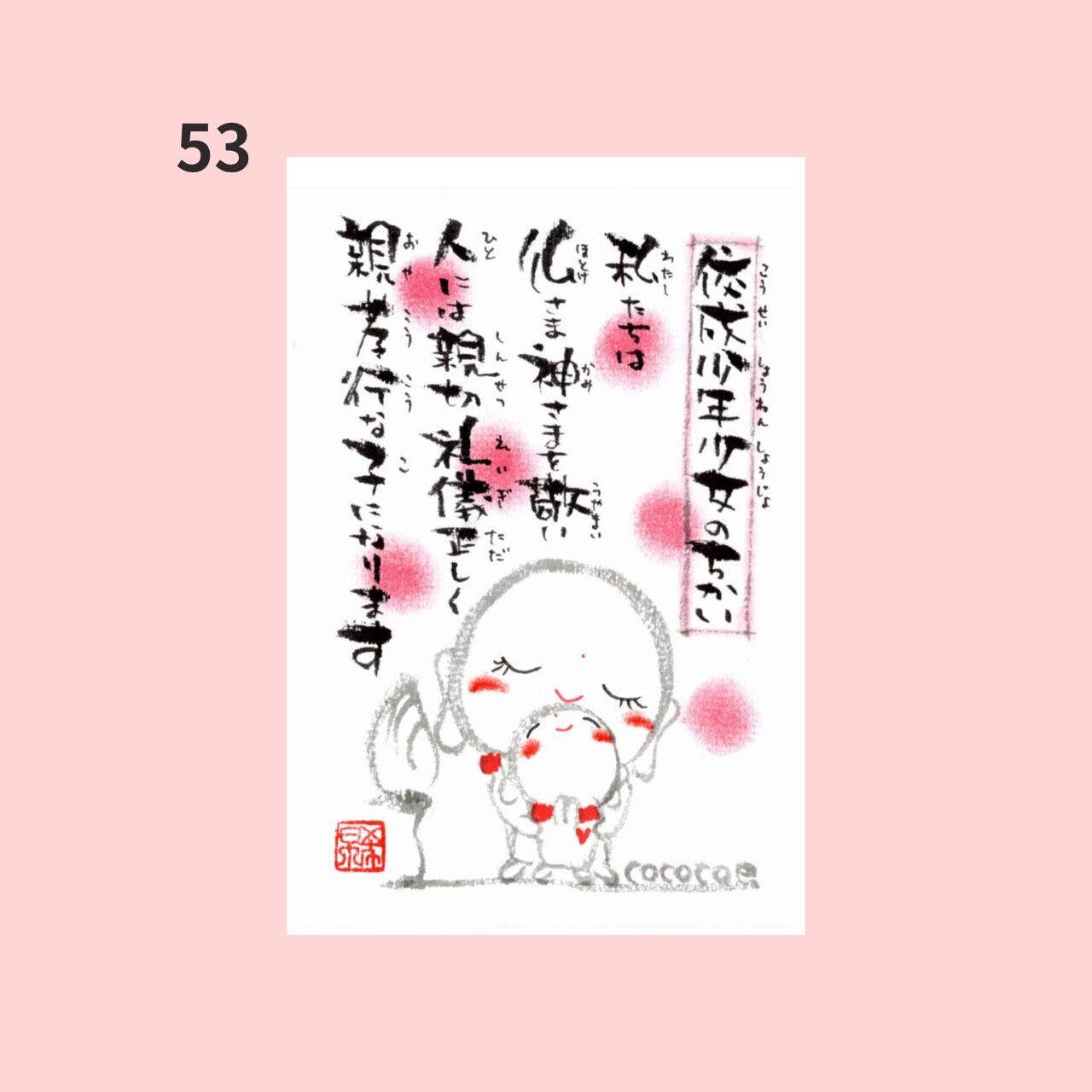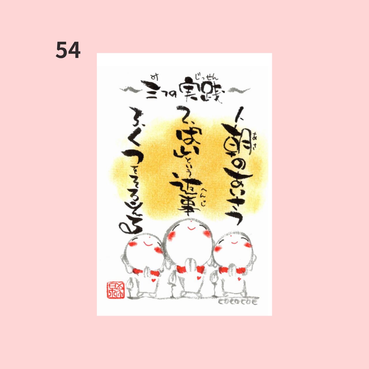 全54種類のデザインから、お好きな1枚をお選びいただけます。友達や家族、大切な方へのお礼の気持ちやお祝いの言葉を、さ地蔵ちゃんと共に届けてみませんか?飾っても、手紙に添えても、お好きなシーンでご活用いただけます。